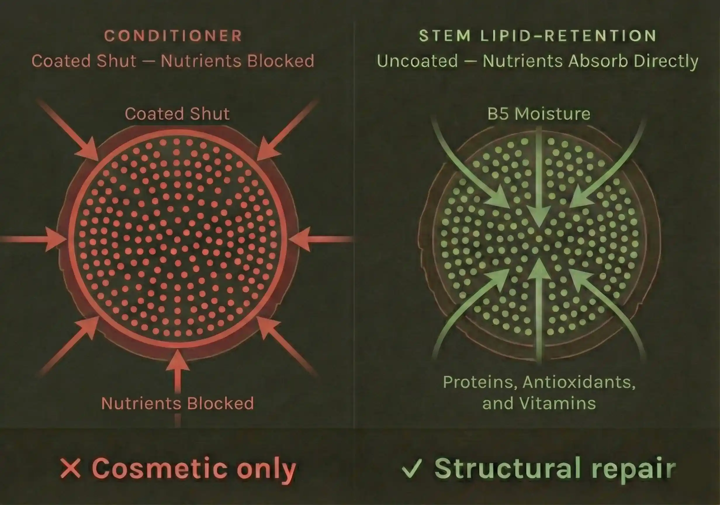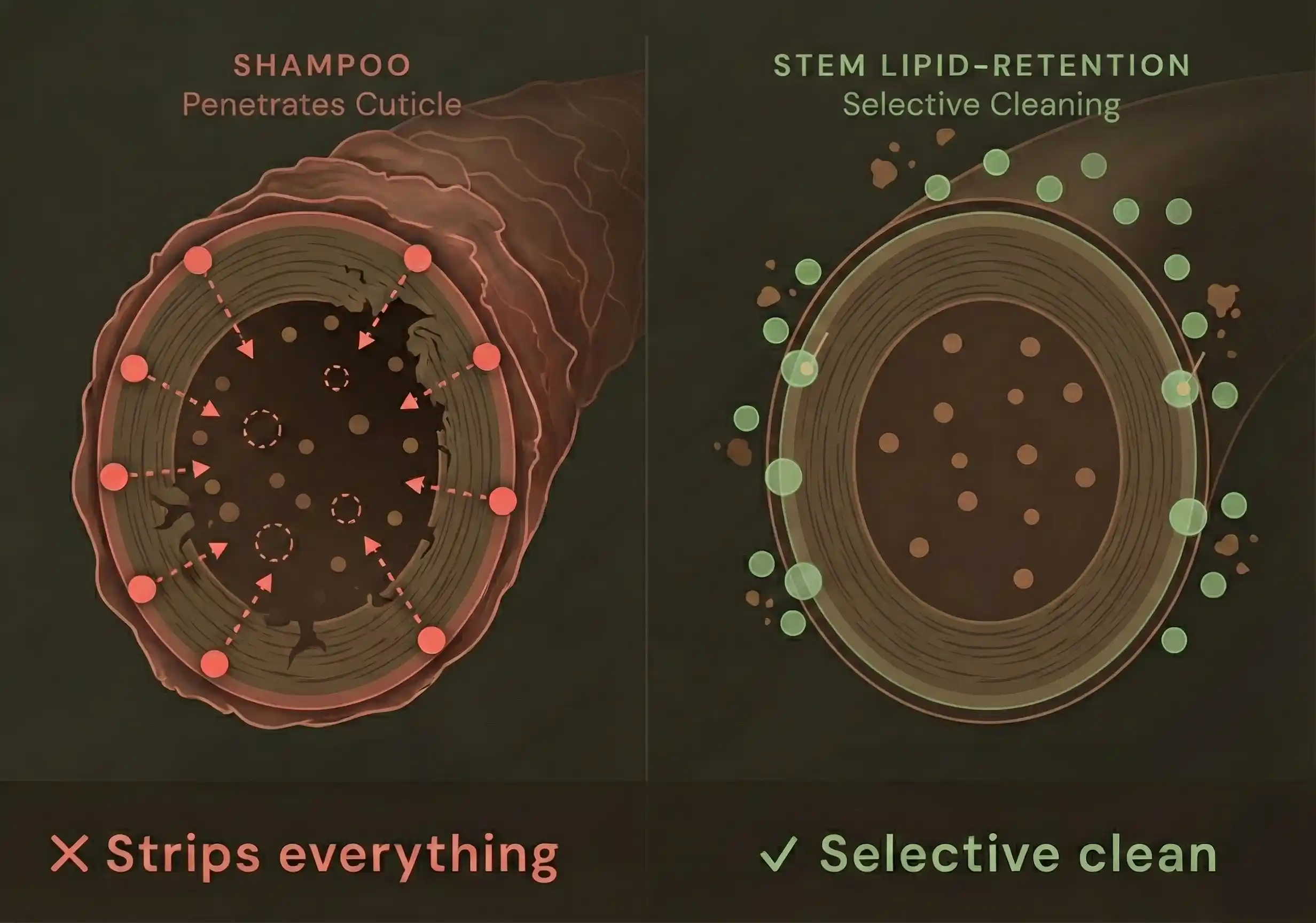 Most shampoos are blunt instruments, stripping away dirt and essential oils alike. Stem’s Lipid-Retention™ technology cleans with engineered precision. It targets buildup while preserving your hair’s protective lipid layer, leaving the cuticle smooth and the moisture barrier intact.